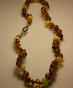 Entdecken Sie die Eleganz und Sicherheit unserer Baltischen Bernstein-Kinderkette, die ideal für das Zahnen bei Kindern ist. Sorgfältig gefertigt aus echtem Baltischem Bernstein, bekannt für seine beruhigenden Eigenschaften beim Zahnen, ist jede Perle einzeln geknotet. Wir bieten zwei Arten von Verschlüssen an: einen magnetischen Verschluss und einen Karabiner, wobei der magnetische Verschluss zusätzlich zertifiziert ist. Details zur Zertifizierung finden Sie in unserer Zertifikatsrubrik. Der Verschluss aus 925er Sterling Silber, gekennzeichnet mit unserem Firmensiegel, verleiht eine Note von Raffinesse und ist ideal für Eltern, die sowohl Stil als auch Sicherheit für ihre Kinder suchen.